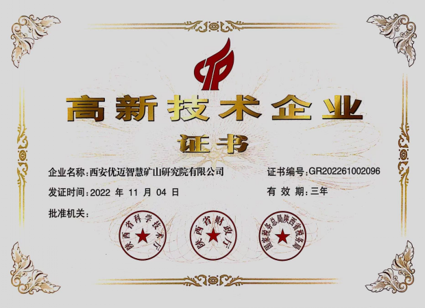 西安建筑科技大学优迈智慧矿山研究院有限公司成立于2020年11月, 注册资本2000万元, 由西安建筑科技大学资产经营公司和西安建筑科技大学矿山智能科学与工程研发团队、陕西沃能、临工集团共 同组建而成, 依托陕西省智能开采理论与技术科技创新团队、西安市智慧工业感知计算与决策重点实验室和1990年就成立的矿山系统工程研究所等30余年深厚的科研成果积淀, 已成长为集产学研于一体的国家级高新技术企业。